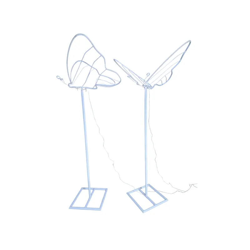 Elegantes mariposas decorativas elaboradas en metal con delicados acabados y detalles iluminados. Incorporan luces LED suaves que aportan un brillo cálido y mágico, ideal para ambientar celebraciones tanto de día como de noche. Perfectas para decoraciones colgantes o rincones especiales, estas mariposas aportan un toque de fantasía y sofisticación. Su diseño combina ligereza visual con durabilidad, creando una atmósfera encantadora.
